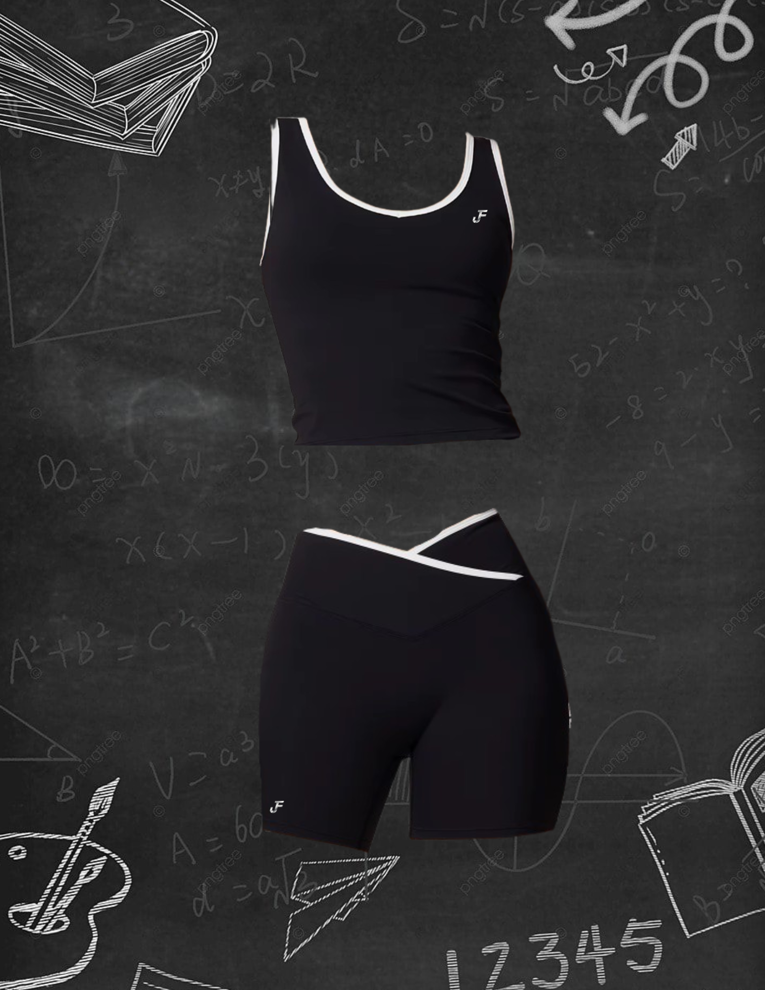 - White contrast trim and built-in support matching crossover waist shorts for a sculpted fit.